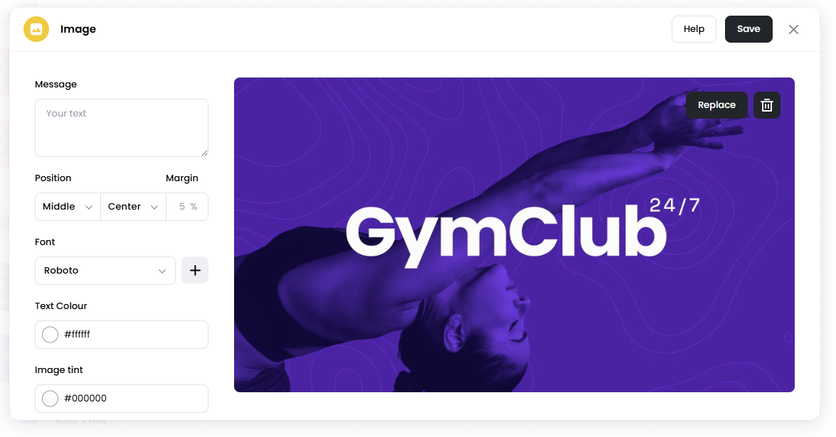 Message Add optional text that will appear on top of the image.