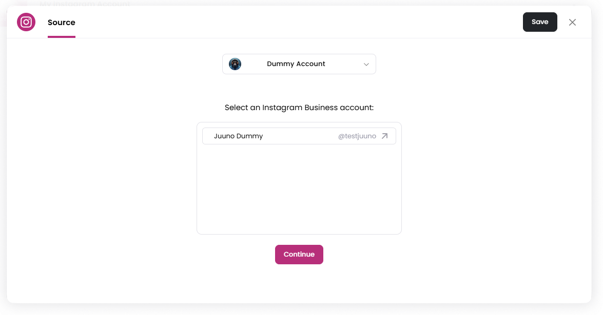 To use this app, you must connect an Instagram account to Juuno and select the account you want to display posts from.